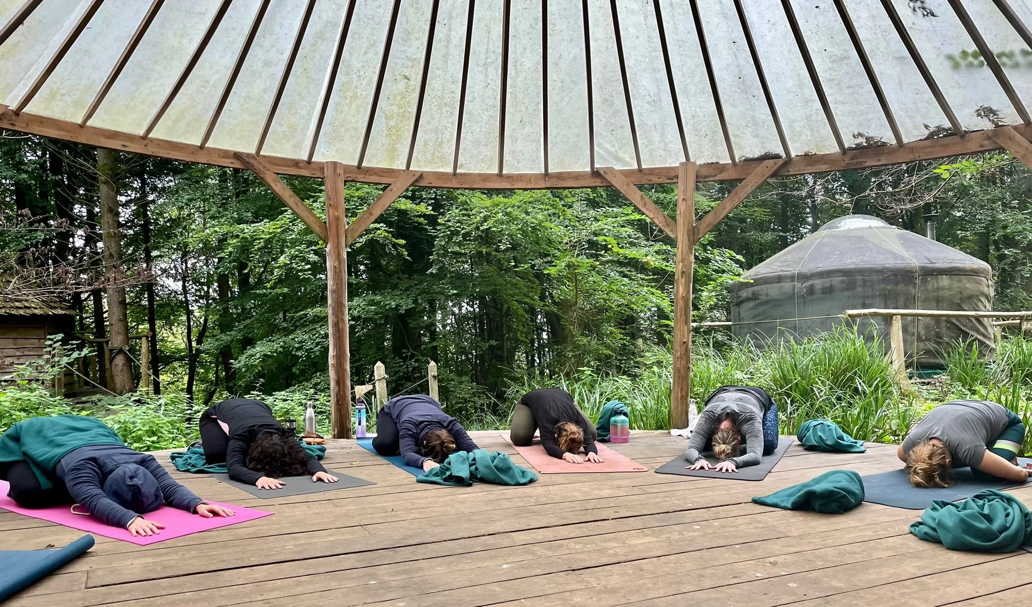 Twice daily yoga will take place in an indoor wooden yurt with a cozy woodburner, or in a covered outdoor yoga deck, weather permitting.